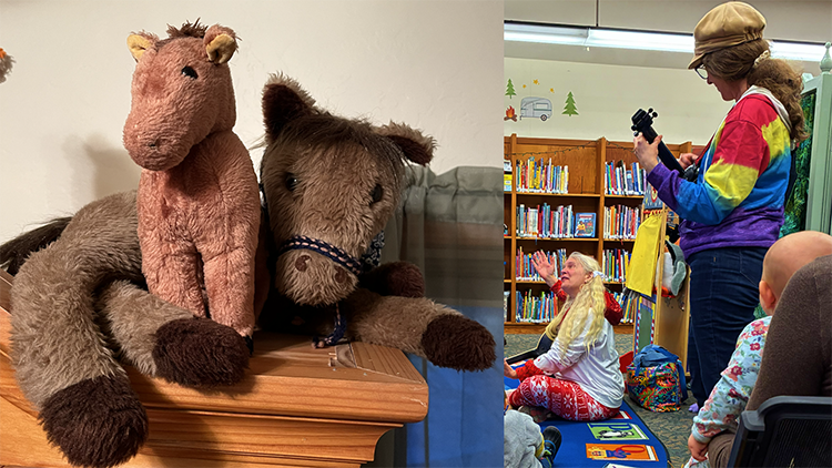 I have a little story about divine order as a reminder of how the little moment decisions are always coming full circle. I live near the library here in Mount Shasta so I had introduced myself and let them know I could be a back up storytime person. I was asked if I could do puppets. SURE! So long story shorter, I am doing puppets and music once a month with Kim Niles who also teachers drama at the local community college. When she was here for a rehearsal, she recognized 1 of my little stuffy horses as one from her childhood named 'Sea Biscuit. She had the mother horse at her house. So of course, I gifted her the little horse as it made a full circle for her.