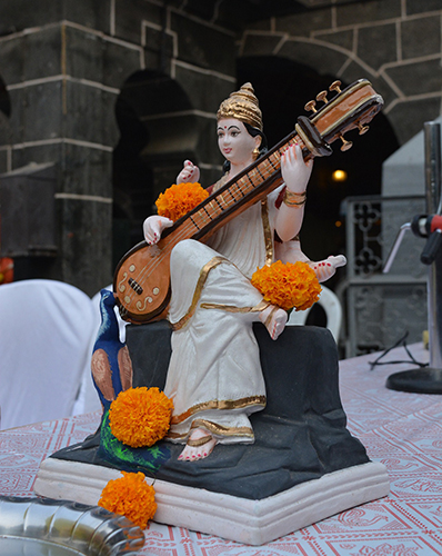 Navaratri means 'nine nights' and is a nine day festival that honors the Mother Goddess in all her manifestations. Throughout the festival & especially the first 3 days, prayers are focused on Durga the ultimate Mother Goddess who clears impurities, the next 3 days prayers are directed to Goddess Lakshmi for spiritual & material prosperity and the last 3 days are for Goddess Saraswati for knowledge & wisdom. It's a festival full of worship and dance. The festival culminates with Dussehra, the victory of good over evil, on the tenth day.